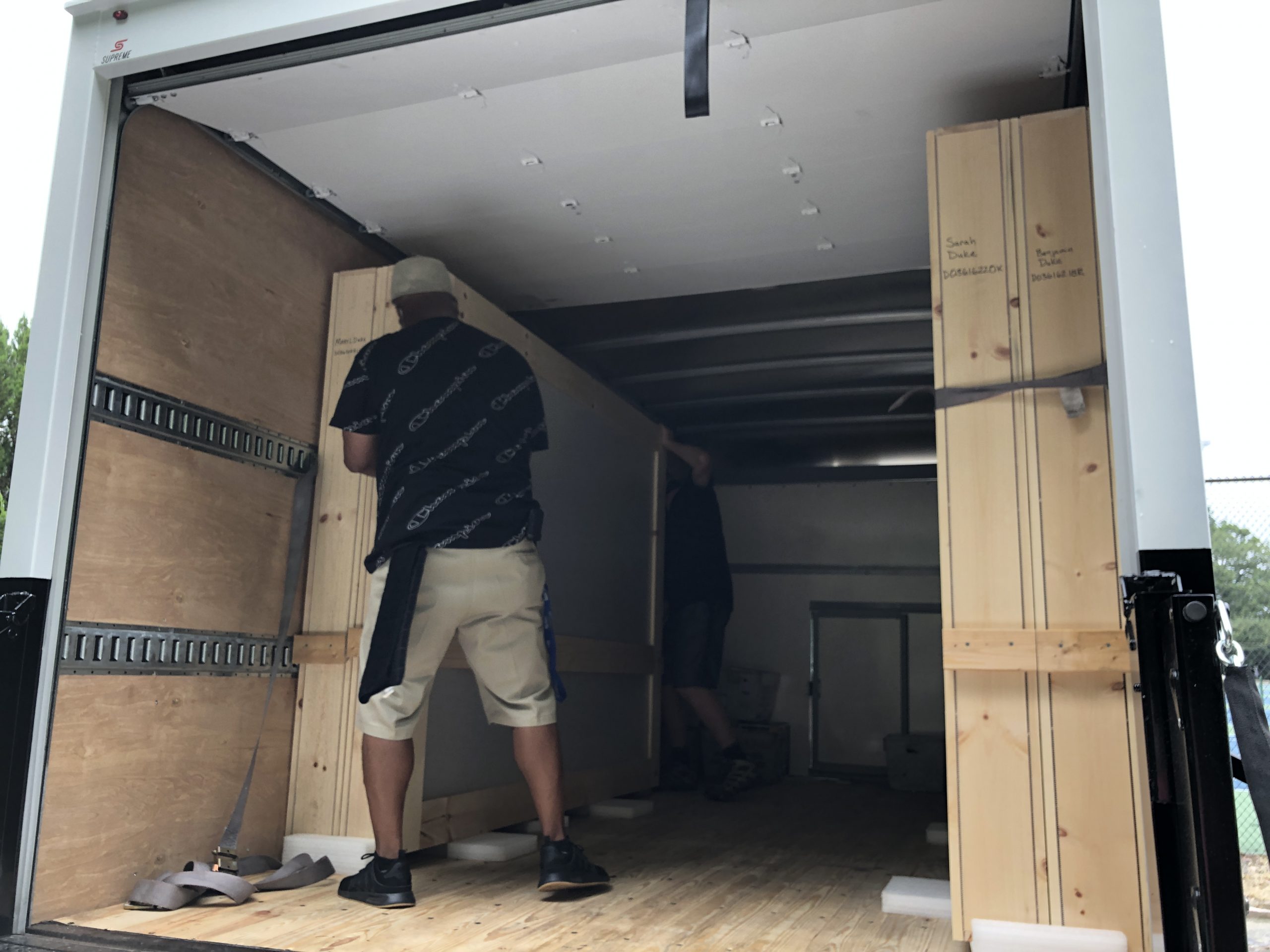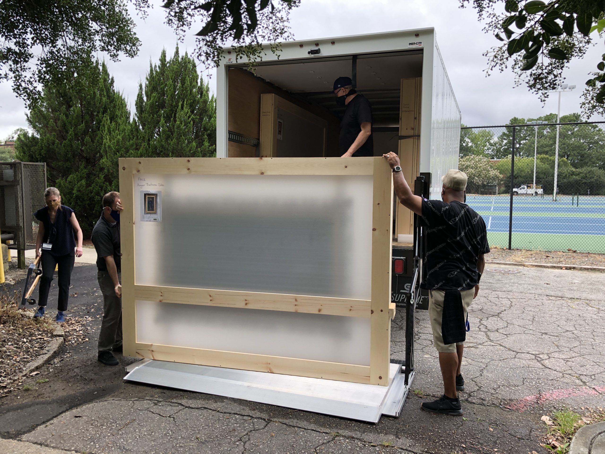Once crated they were ready to move to the LSC. We had extra hands on site so that we could move them safely out of the building, down the ramp, and onto the truck. As four people moved the crates, one stayed with the truck to make sure the contents were secure.