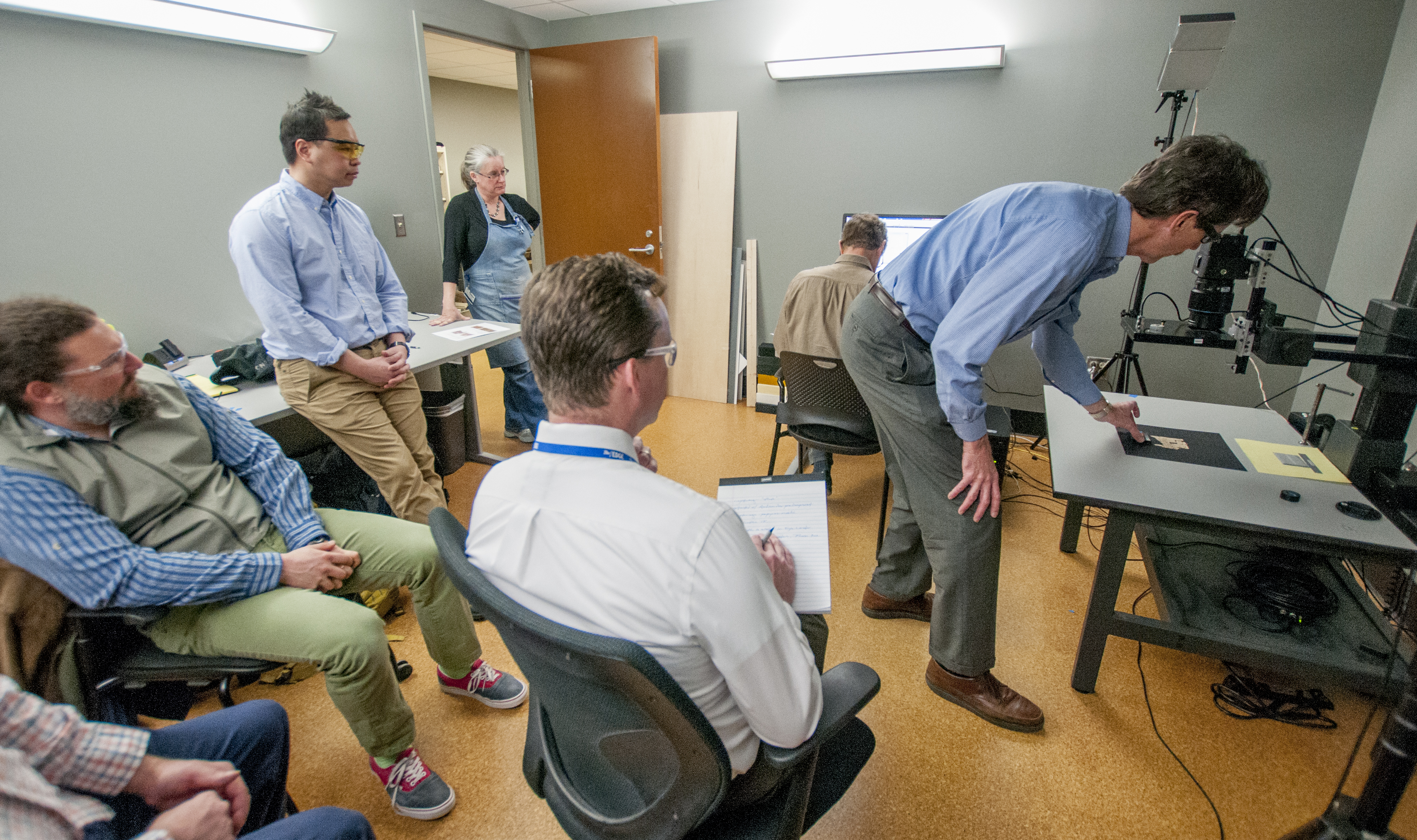 For months a group of DUL staff including Mike Adamo and Molly Bragg from the Digital Production Center, Josh Sosin and Ryan Baumann from the Duke Collaboratory for Classics Computing, and myself have been discussing the potential use of multi-spectral imaging (MSI) in our work. This week, Mike Toth and Bill Christens-Berry of R.B. Toth Associates were on campus to facilitate two days of MSI imaging.