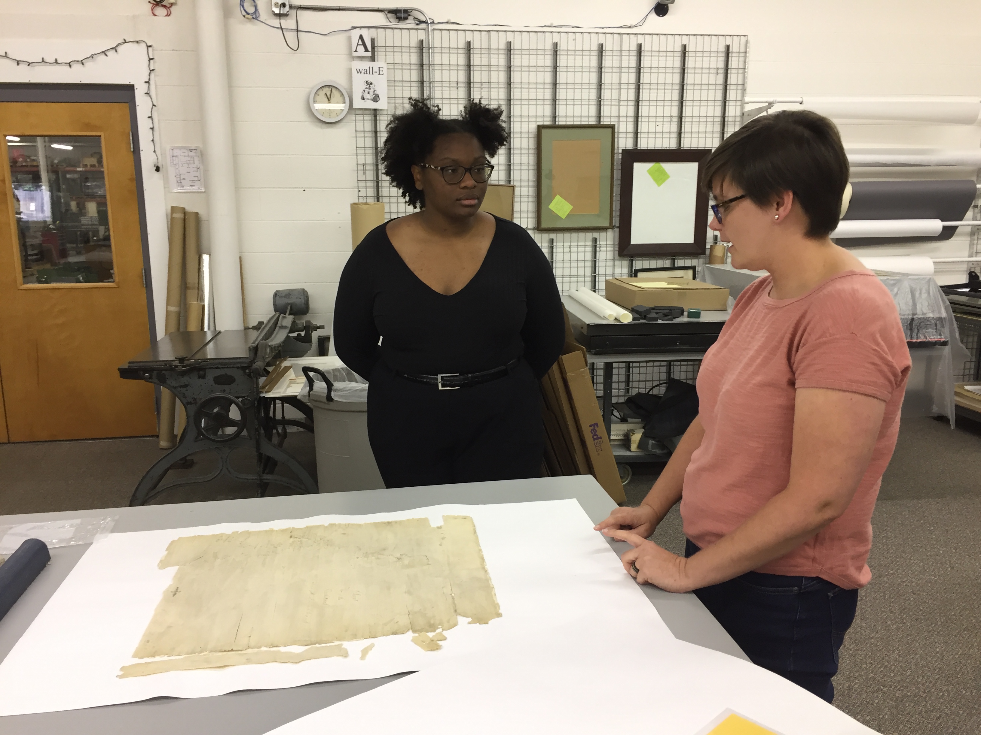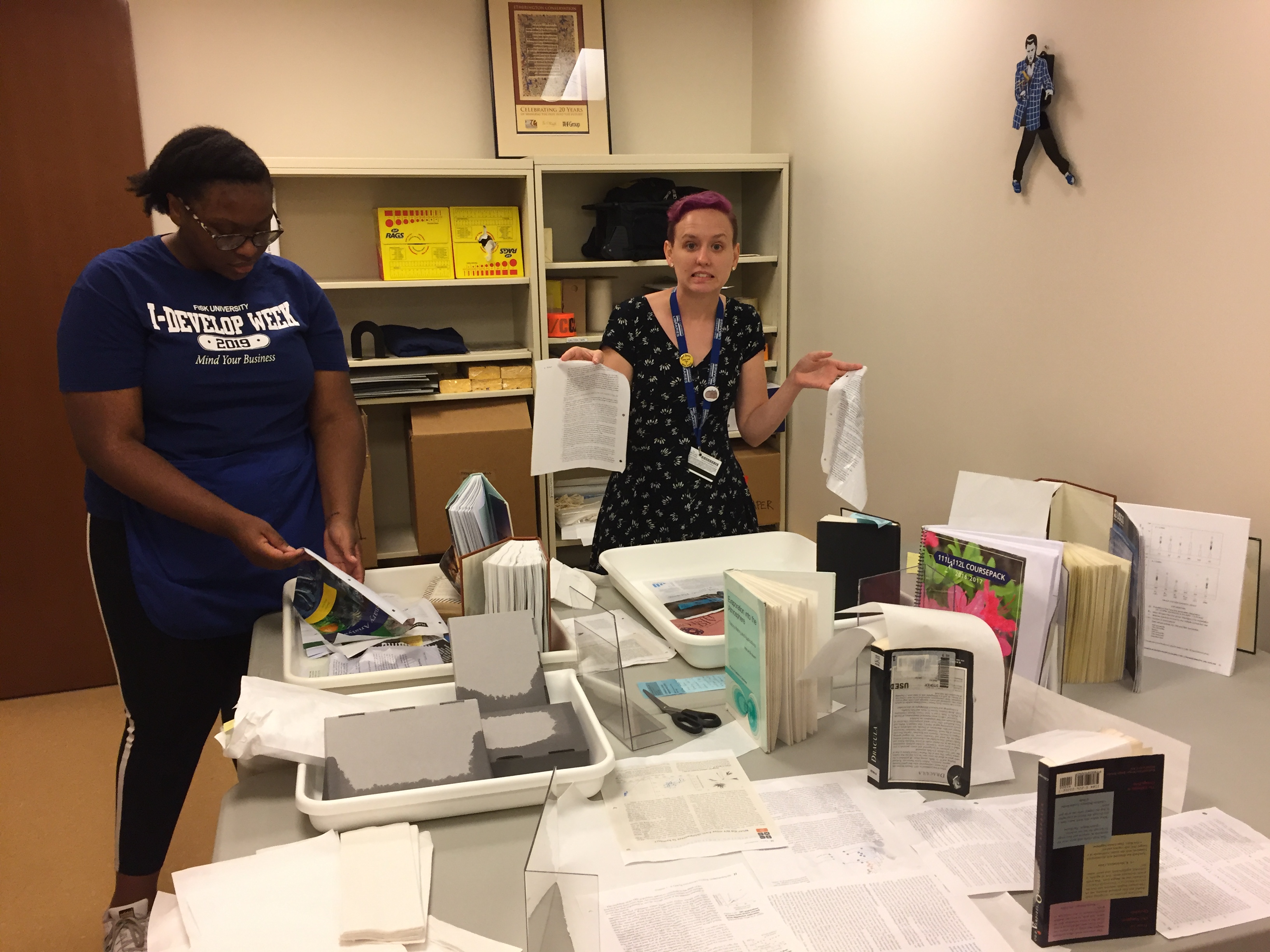 Additionally, the second half of the week was spent introducing Angela to my work in the conservation lab. She learned about how we make treatment decisions for general collections, and has already started doing treatments herself.