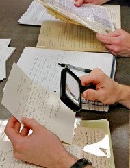 If you, like the gentlemen on the left, have pored over RBMSCL manuscripts, books, broadsides, maps, etc. (with or without a magnifying glass) and turned your brilliant discoveries into a brilliant paper, why not submit it for a chance to receive one of two Chester P. Middlesworth Awards?